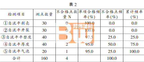 實施結(jié)果:臨修庫彩砂自流平施工后無剝殼、起皮現(xiàn)象,合格率達 100%。