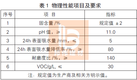 隨著我國科學研究的進展,滲透型液體硬化劑的身影越來越清晰,氟硅酸鹽類、硅酸鹽類液體硬化劑作用機理已經理清,通過作用機理可以明確分為兩類,并可依據主要成分給出兩類產品的準確定義。在物理性能要求中可實際報出pH 值有利于用戶選擇。