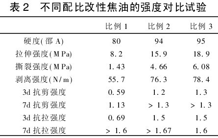 (3)不同配比改性焦油的強(qiáng)度對(duì)比試驗(yàn),結(jié)果見(jiàn)表2。