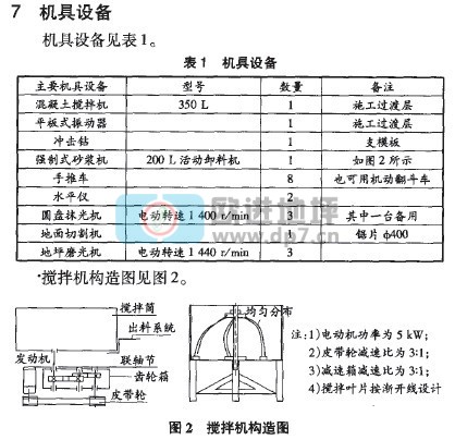 b.拌和:拌和采用0.2 m 強(qiáng)制式砂漿攪拌機(jī),攪拌機(jī)可參考“7機(jī)具設(shè)備”中的示意圖加工制作。按骨料,水泥,外加劑,水的順序依次加入攪拌筒內(nèi),每盤可投入150 kg水泥,攪拌必須均勻,攪拌時(shí)間不少于2 min。C.?dāng)備仯捍鼵35混凝土初凝前后,立即開始攤鋪面層拌和料;并在C35混凝土終凝前,完成第一次人工壓光。