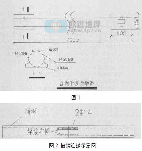 地坪采用自制的平板振動器找平,自制平板振動器詳圖如圖1。