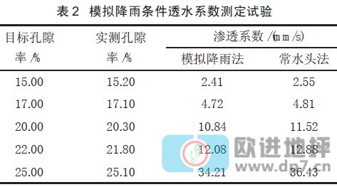 (2)模擬降雨法與常水頭法相比,測得的滲透系數(shù)均較小一些,并有隨孔隙率的增加,兩者差值增大的趨勢。(作者:倪彤元,胡康虎,何鋒)