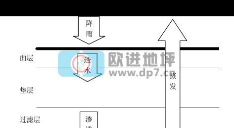 透水性鋪裝包括透水性瀝青混凝土鋪裝、透水性水泥混凝土鋪裝及透水性地磚等;我國傳統(tǒng)的用于園林鋪地的鵝卵石地面鋪裝也是透水性鋪裝的一種。透水性鋪裝的透水一般方式就是地面上的降水可以通過面層與其鋪裝下墊層相通的滲水路徑滲入下部土壤;另一種透水方式是依靠地磚接縫或地磚之間預(yù)留空隙來實現(xiàn)透水目的[3]。