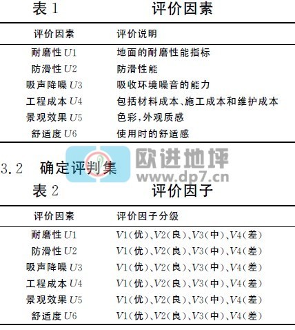 U={耐磨性U1,防滑性U2,吸聲降噪U3,工程成本U4,景觀(guān)效果U5,舒適度U6}。